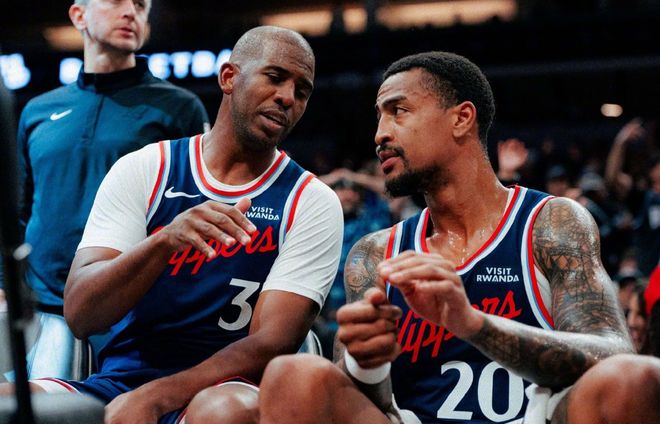 其次,保罗带队的替补阵容,季前赛表现确实不错,但为什么常规赛就不行了?没有主攻手,都是大菜旁边的摆盘。实际上巴图姆也好,大洛也罢,都能拉开空间,可是到底为谁拉开空间?为科林斯?而且泰伦卢从季前赛开始,就已经强行分流:哈登和小卡一组带首发,保罗带替补,不让哈登和保罗出现球权冲突,也不让伦纳德干扰保罗带队节奏。那只剩下一个办法,就是让比尔去替补,和保罗一起盘活衔接段,不然快船替补席就没有一个稳定得分点,保罗的组织策应也形同虚设。